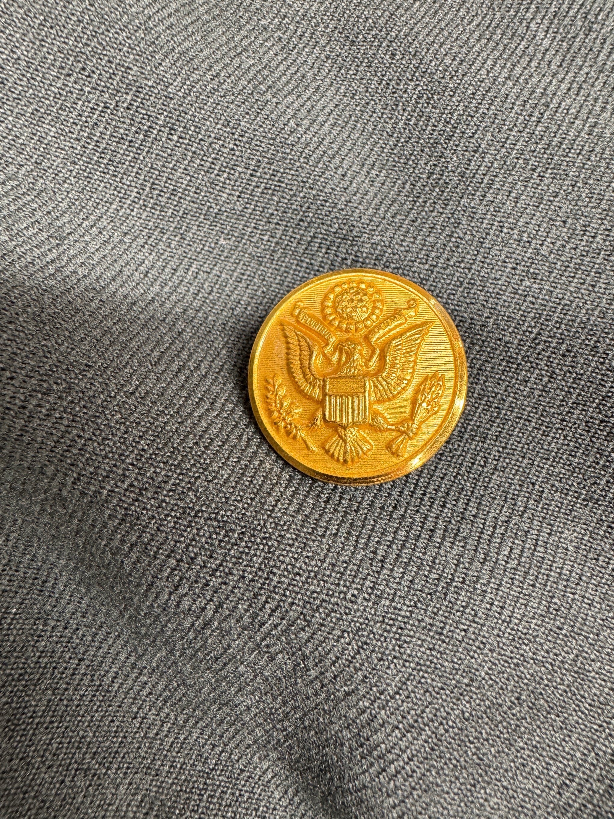 Condition:Excellent Item Description~ Vintage Dated 1959 Military Issue US Army Wool Serge Coat-Named Vintage WW II Rainbow Sword Patch Gold Buttons Condition~ Excellent-very light...