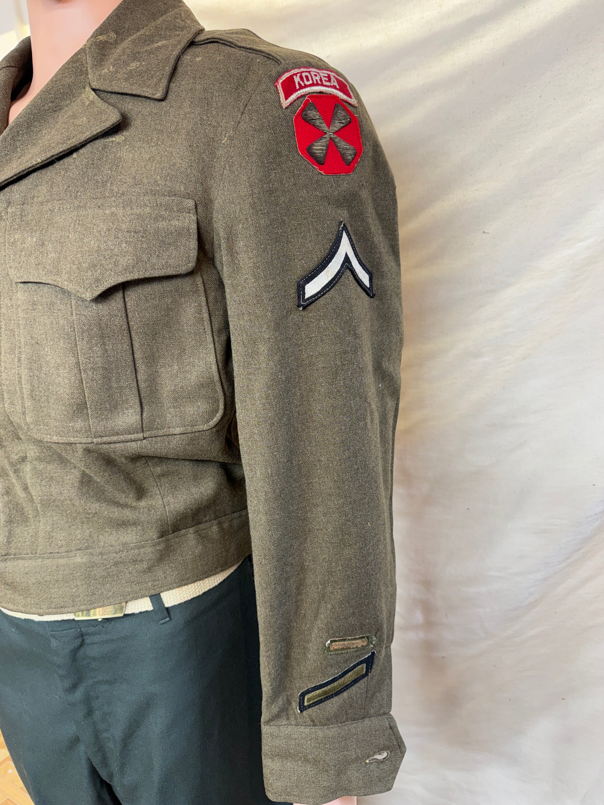 Condition-Very Good Missing last Front Button (For Waist line, by waist Snap) Liner has a tear(see last Photo) ERA: Dated 1944(WWII) Pants Not Included Here’s...