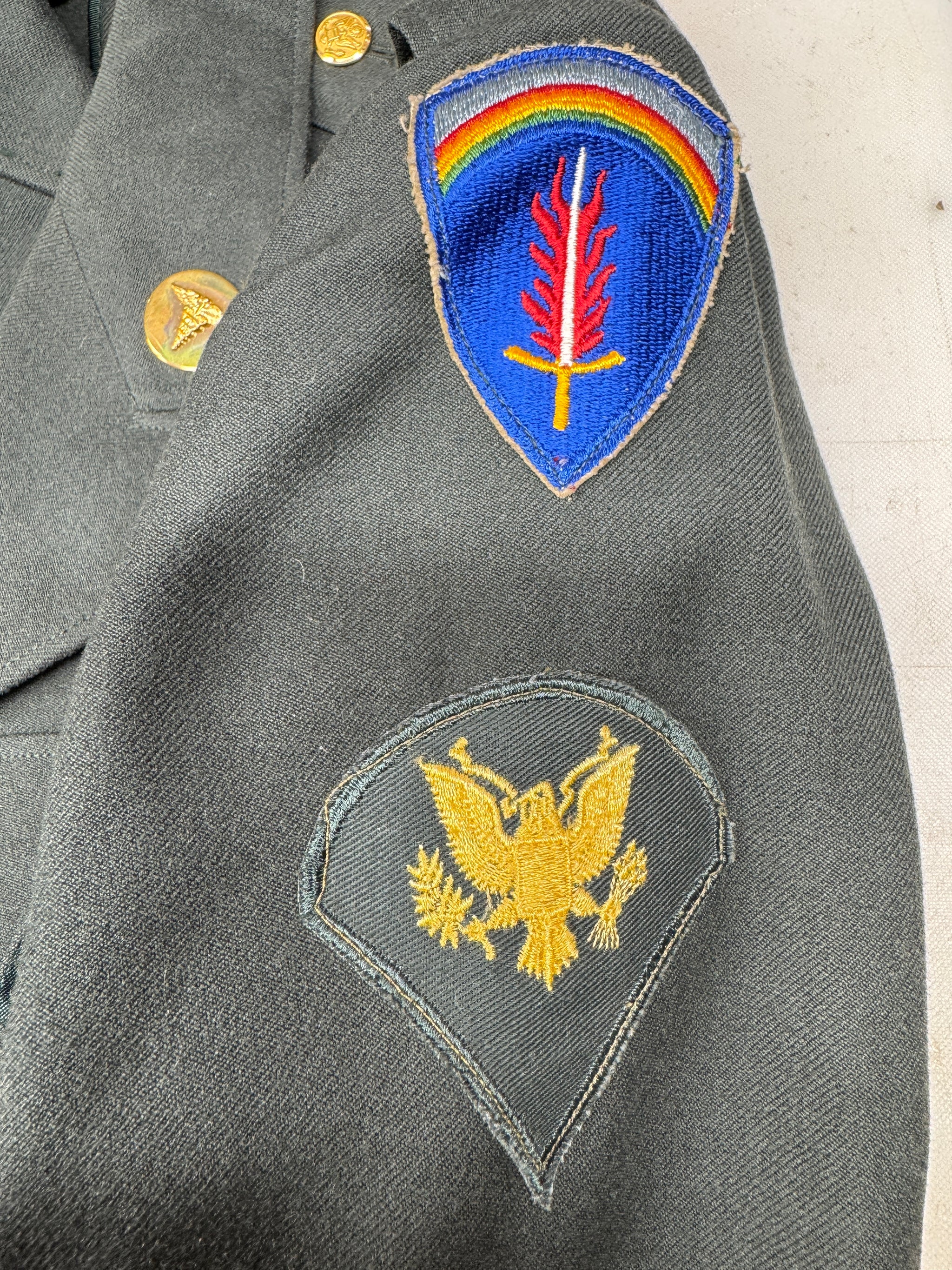 Condition:Excellent Staff Sergeant Rank is displayed on both arms Overseas bar on Left Arm US HEALTH & SERVICES COMMAND PATCH Medical Collar Disc on Left...