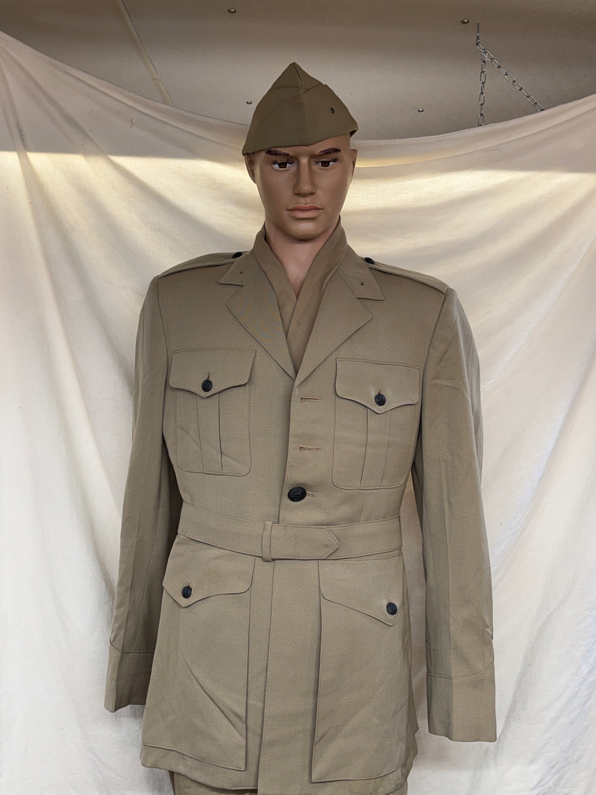 Condition-Vintage Excellent NAMED This vintage USMC Marine Corps Officer's Wool Formal Dress Uniform - Jacket,Pants,Tie,Belt & Hat from the Korean War is a true piece...