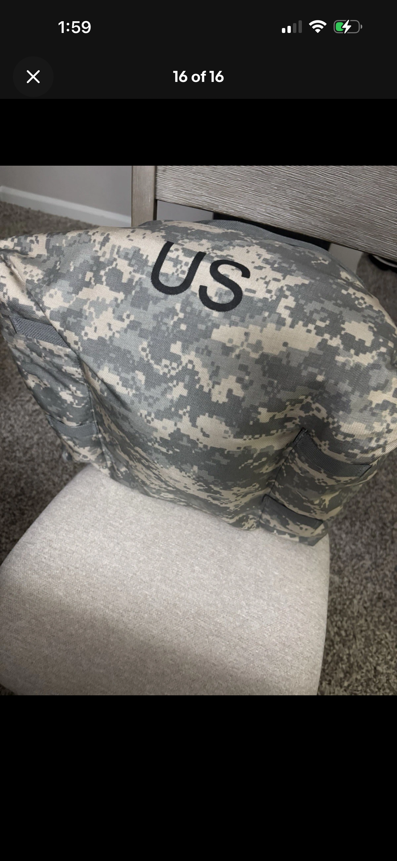 Product Description Government issue.Approximate Size: 11" Width x 10.5" High x 4.5" Deep, Adjustable straps attached to each side, Main top flap closes with Velcro,...