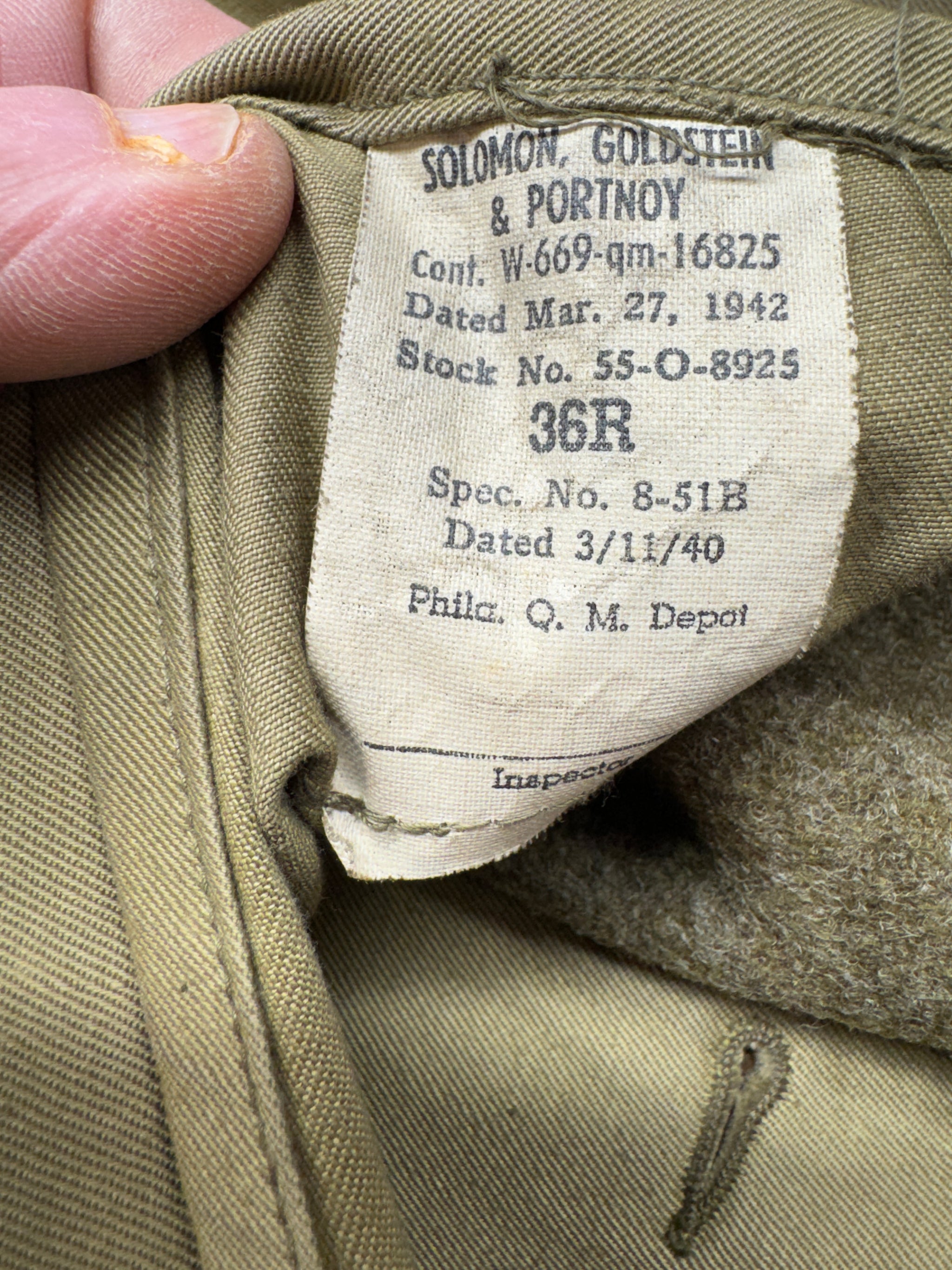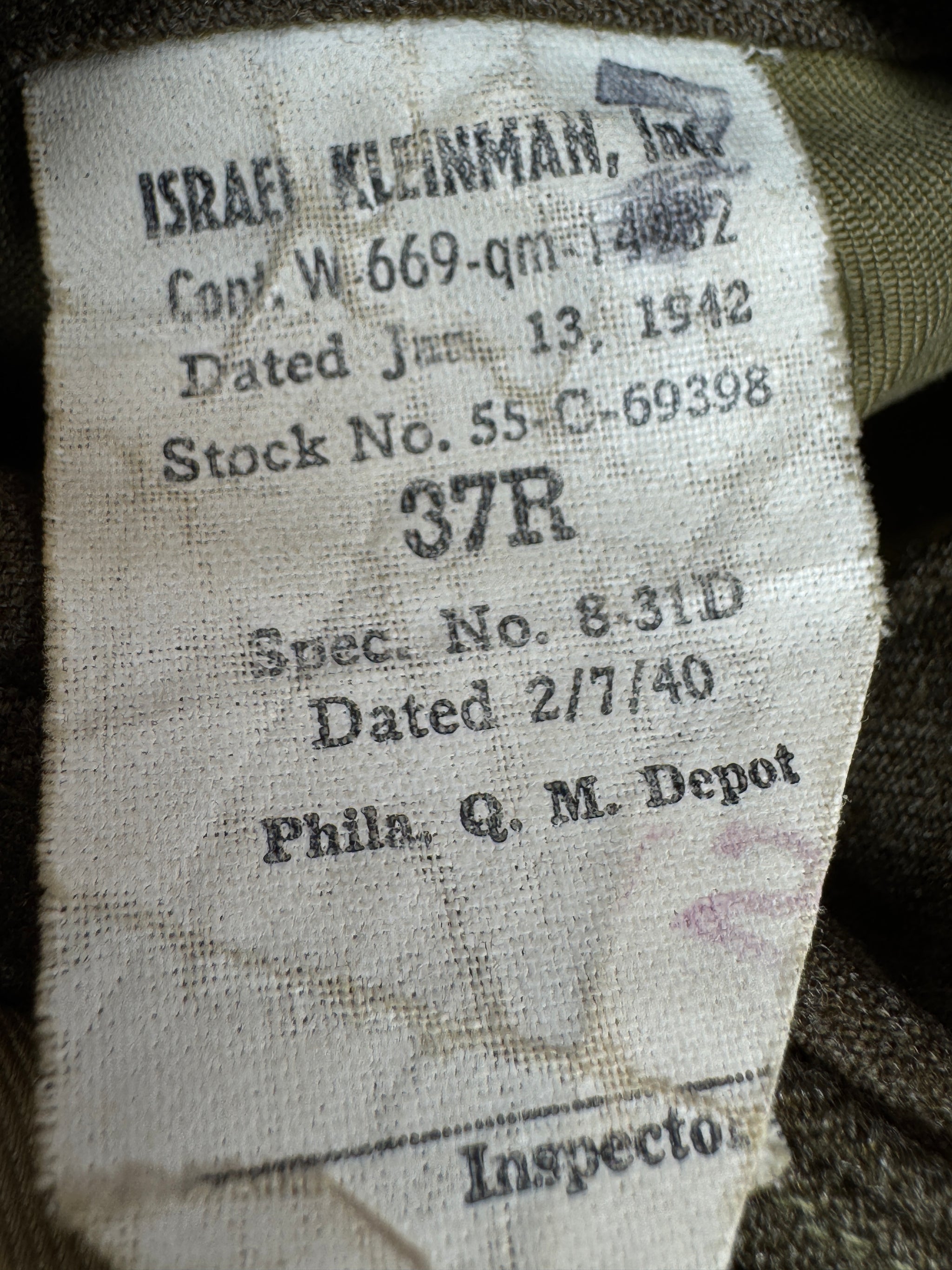 WWII U.S. O.D. Wool Ike Jacket Dated 1945 Size 36 Regular No Insignia