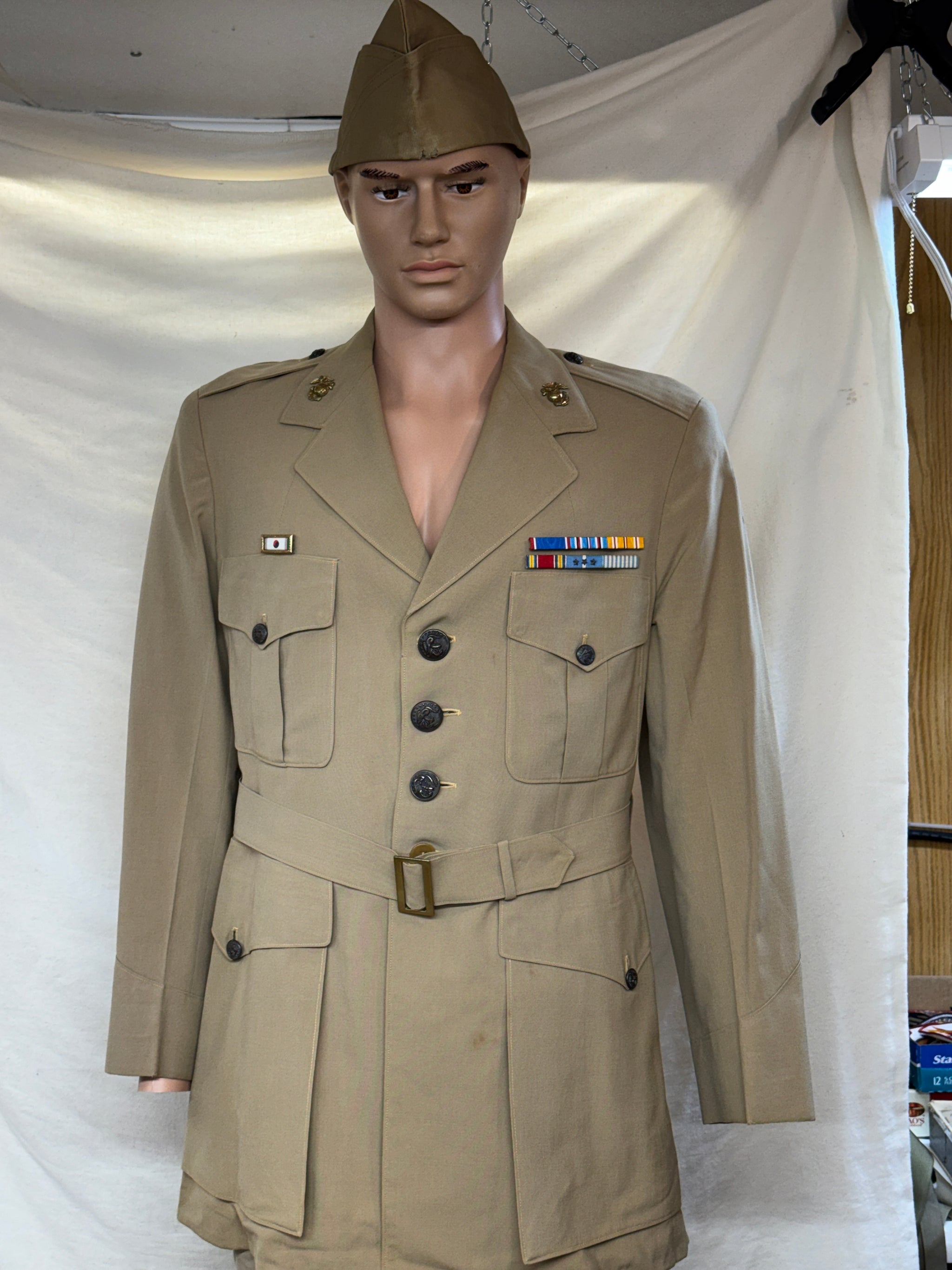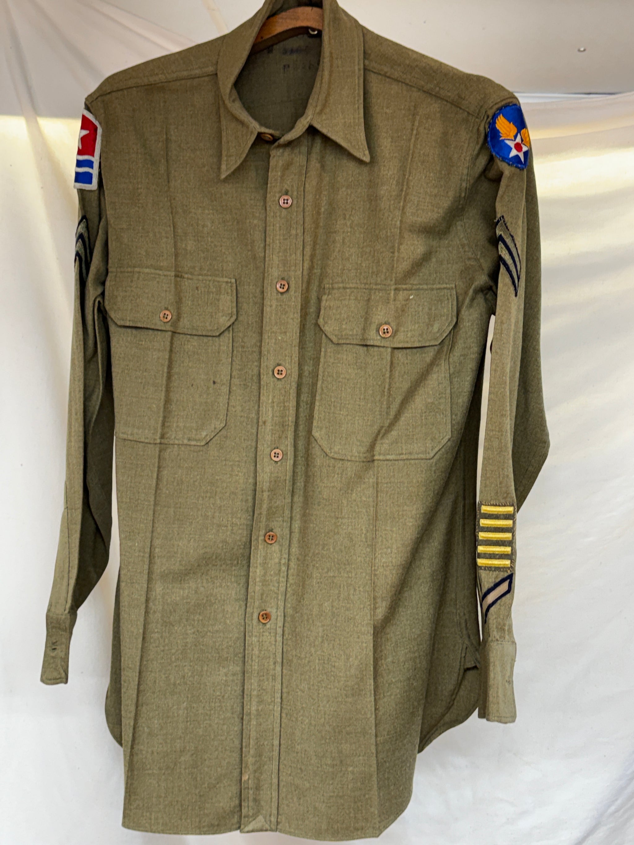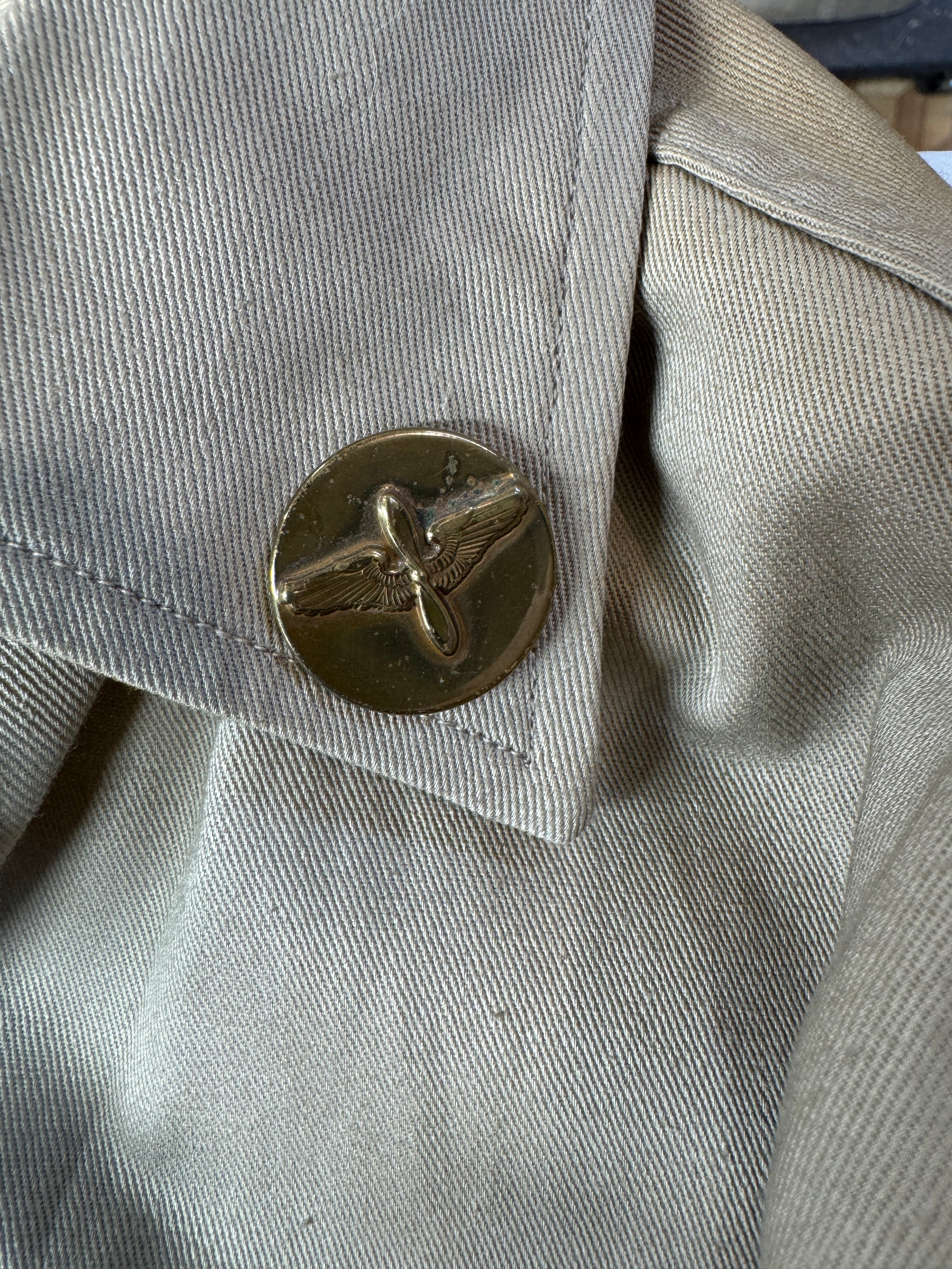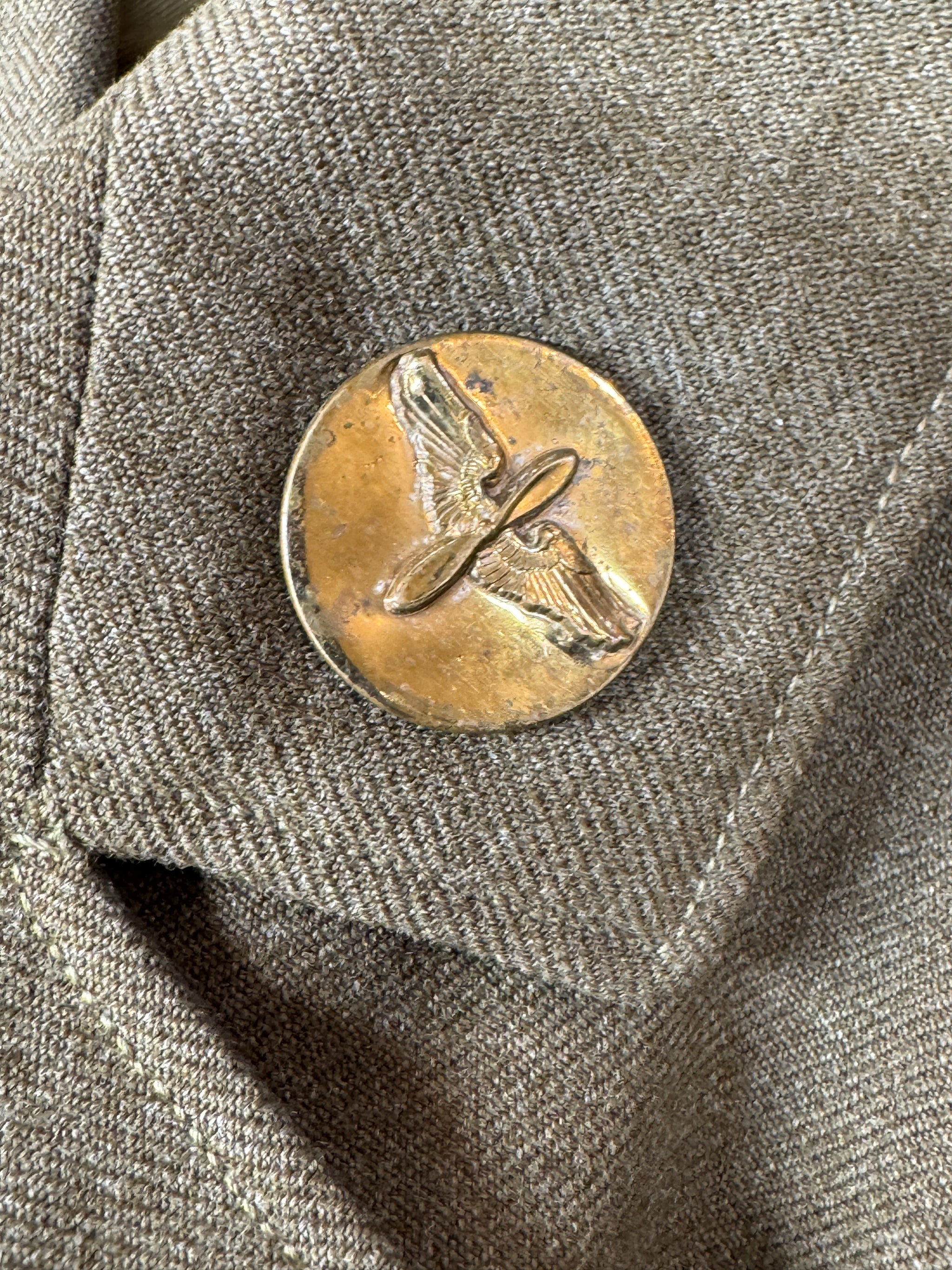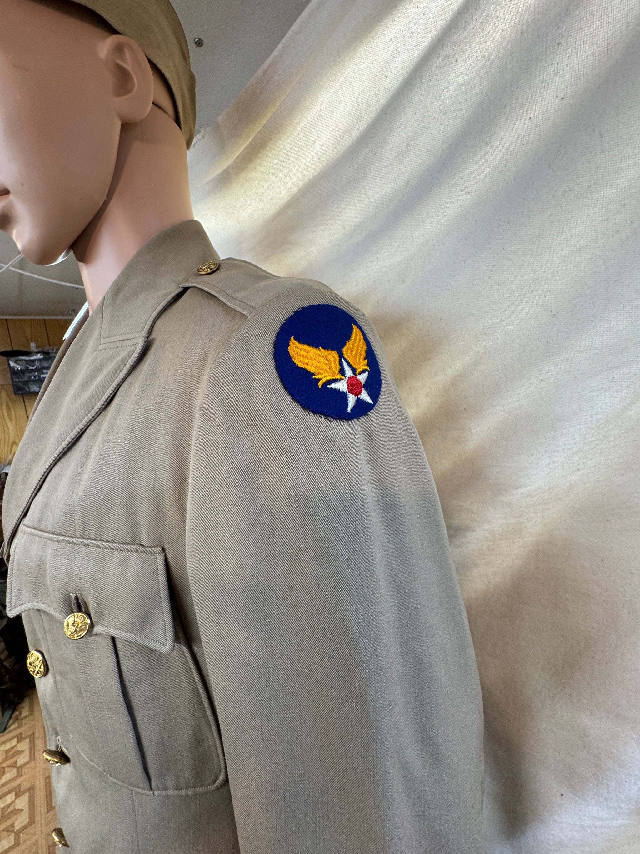 Condition-VIntage Excellent Vintage US Army Air Forces Officers Khaki Dress Jacket Named . It measures 17 inches shoulder to shoulder, 18 inches armpit to armpit...