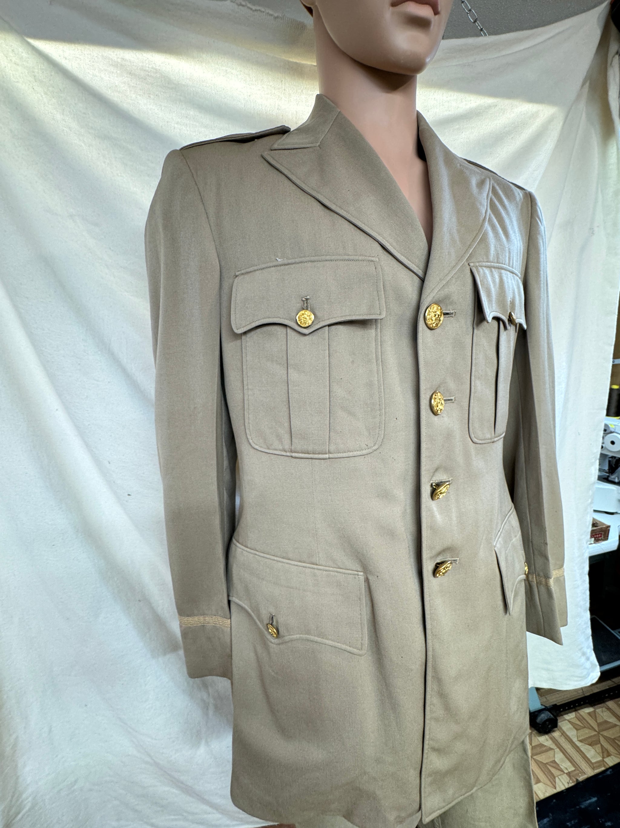 WWII US Army Officer Tunic Green Gabardine Wool Class A 38Reg.