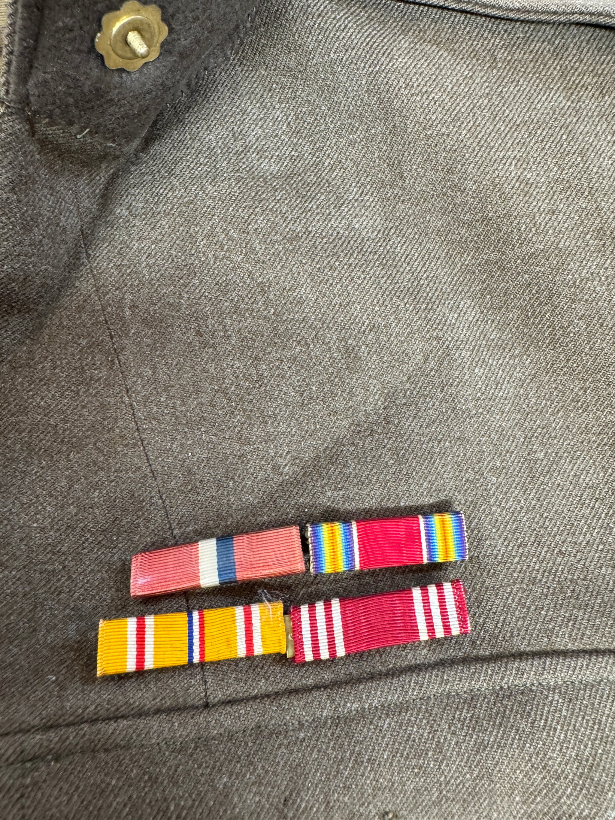 Size: 40 XLong Rank: Captain Original Patch: U.S. Army's 3rd. Infantry Division. Armpit to Armpit 20 inches, sleeves 27 inches Gold Buttons Era : Vietnam Perfect...