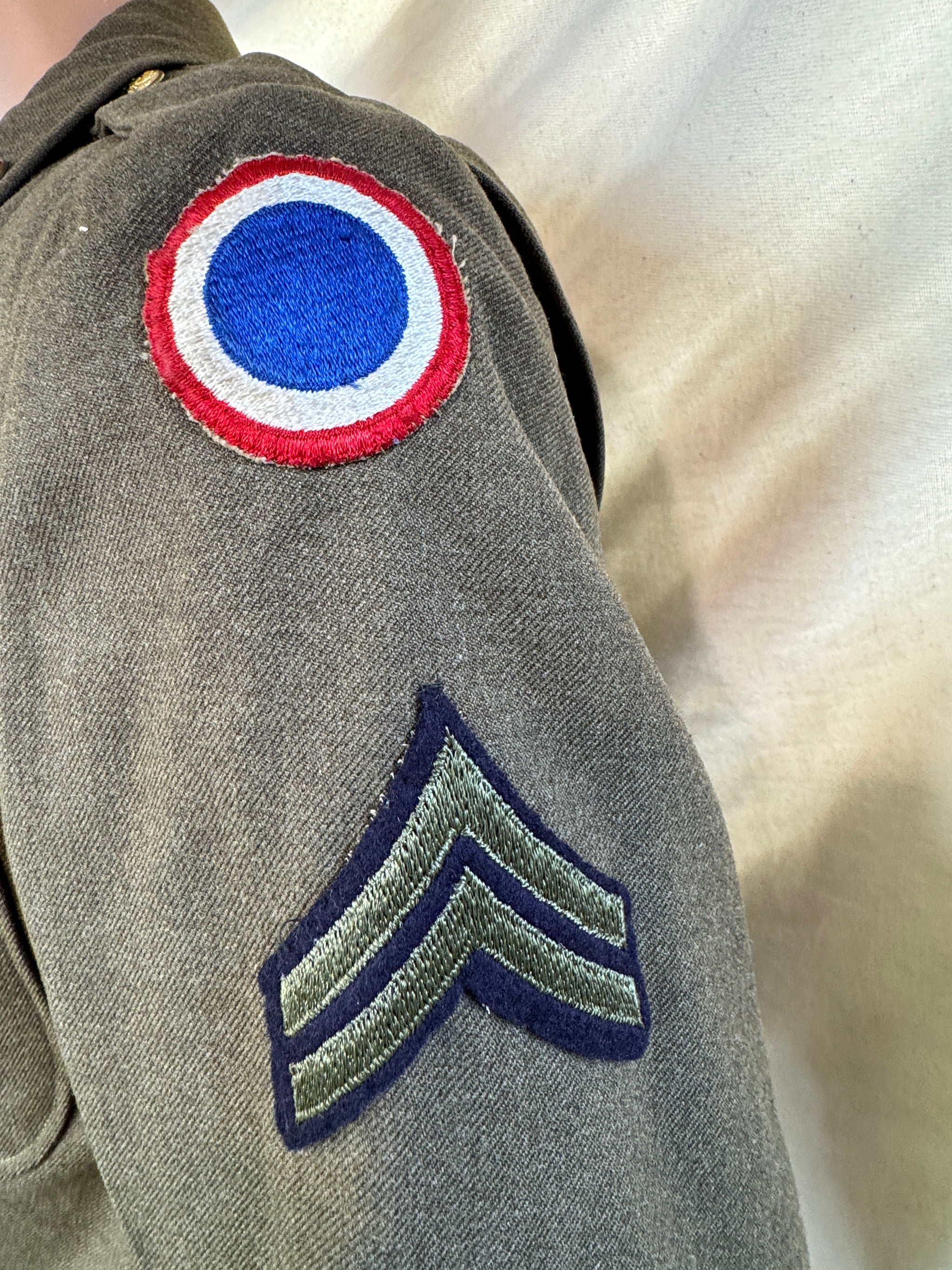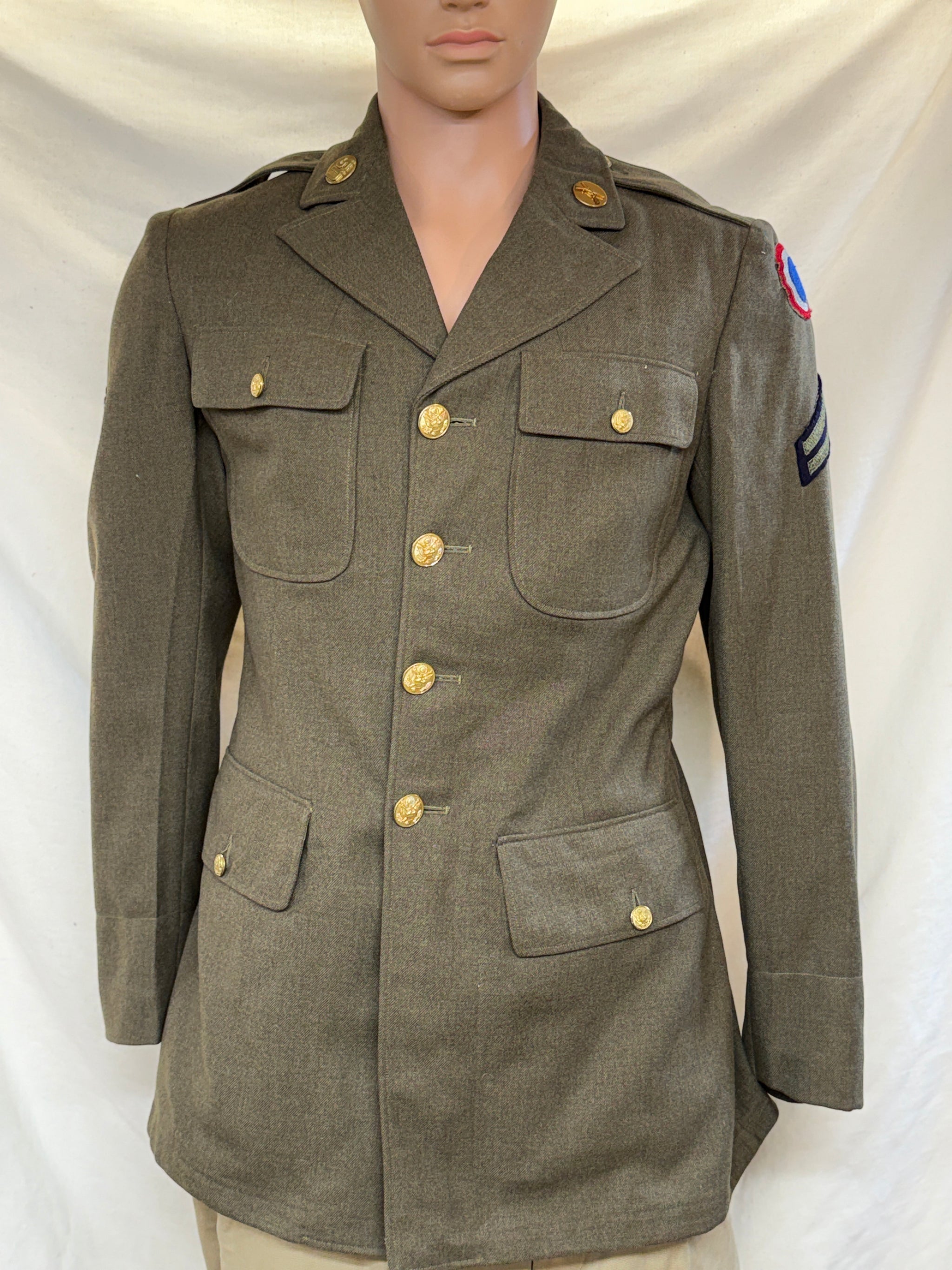 Condition-Excellent WW II US Enlisted Wool Coat Ground Forces Replacement Depots Patch WWII US Army Corporal Chevron Stripes WWII US Army Infantry Collar Brass Crossed...